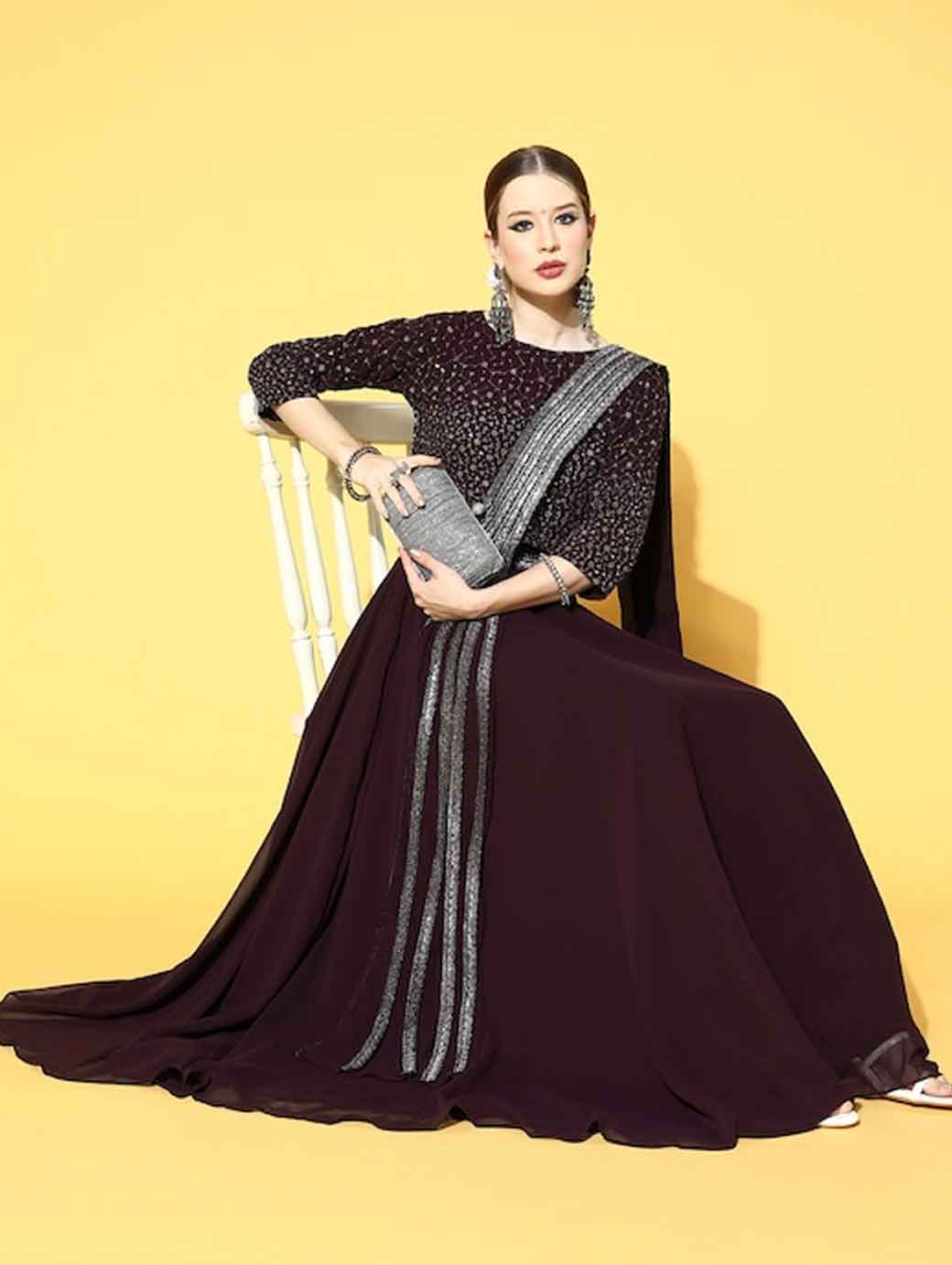 Take your traditional look to the next level with this elegant lehenga choli. It includes an enchanting boat neck and flared bottom to complete your look.