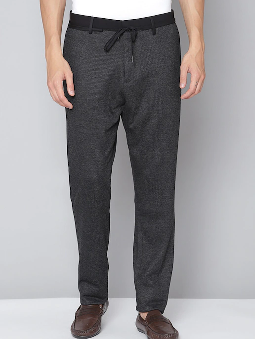Men Charcoal Cotton Slim Fit Trousers