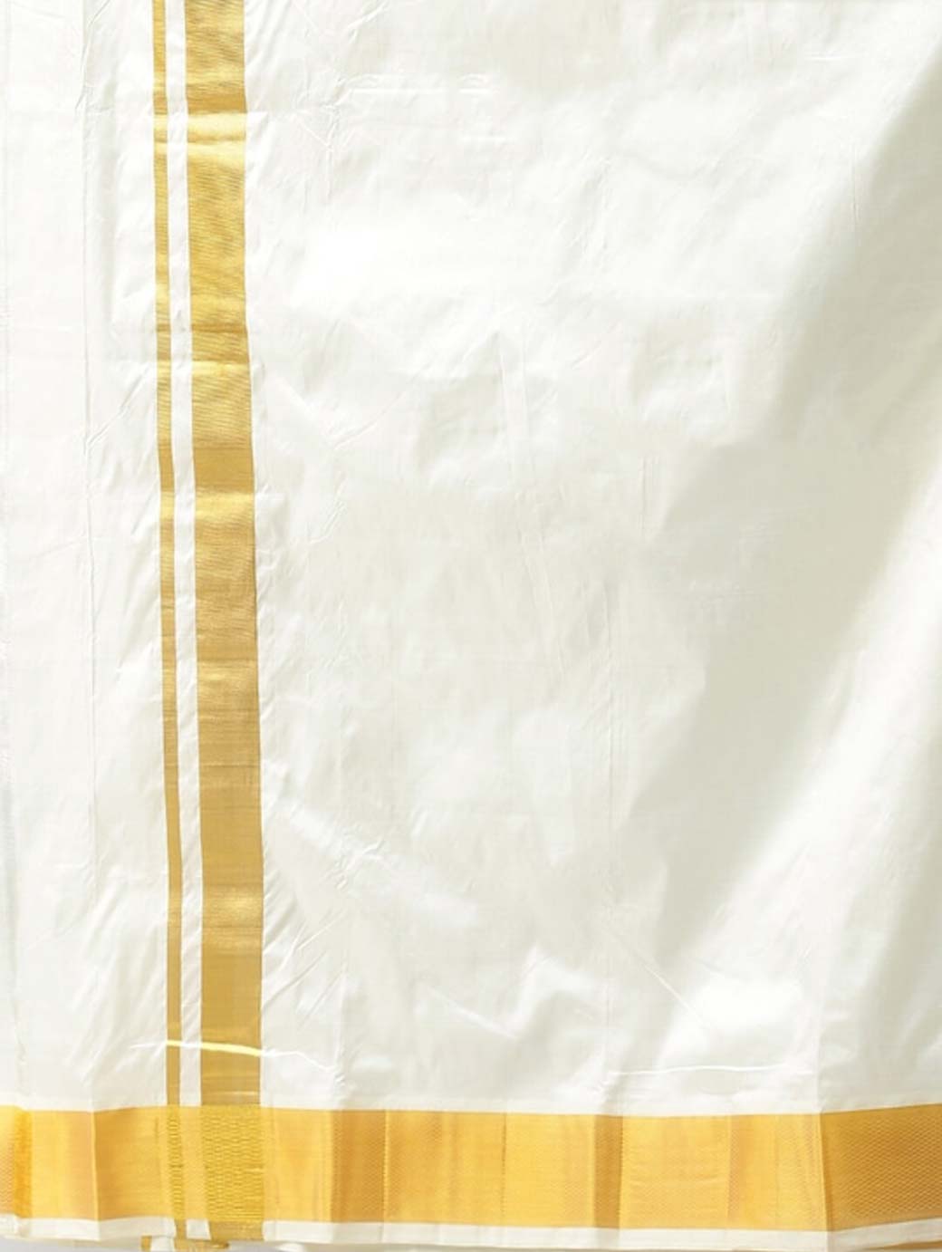 Cream-coloured solid dhoti, has a gold-coloured zari border Cream-coloured solid towel, has a gold-coloured zari detail border