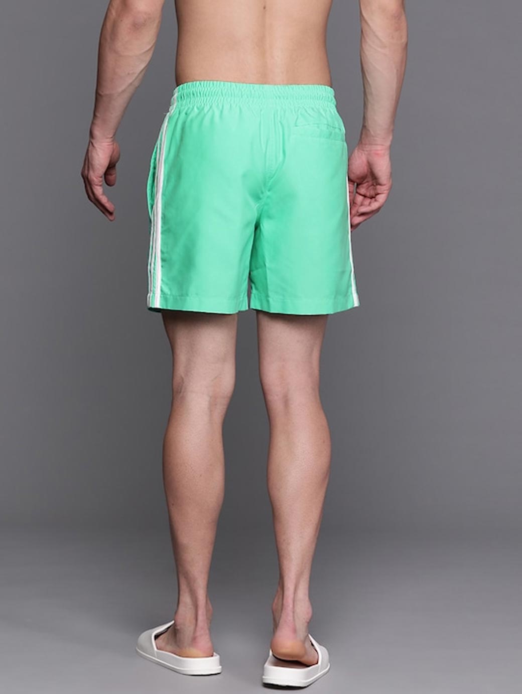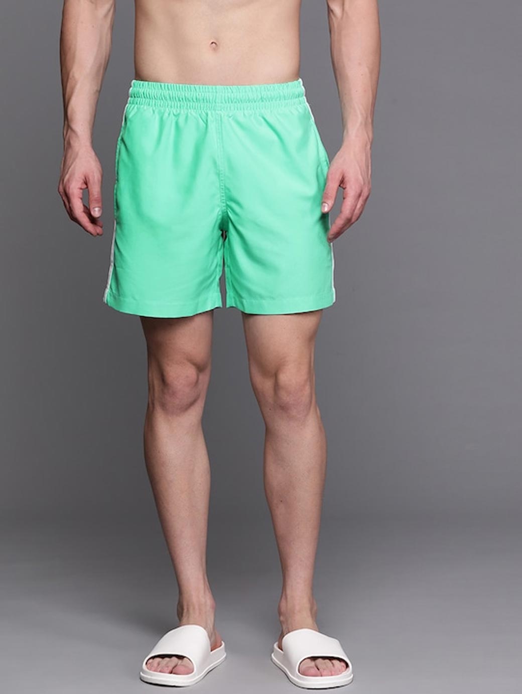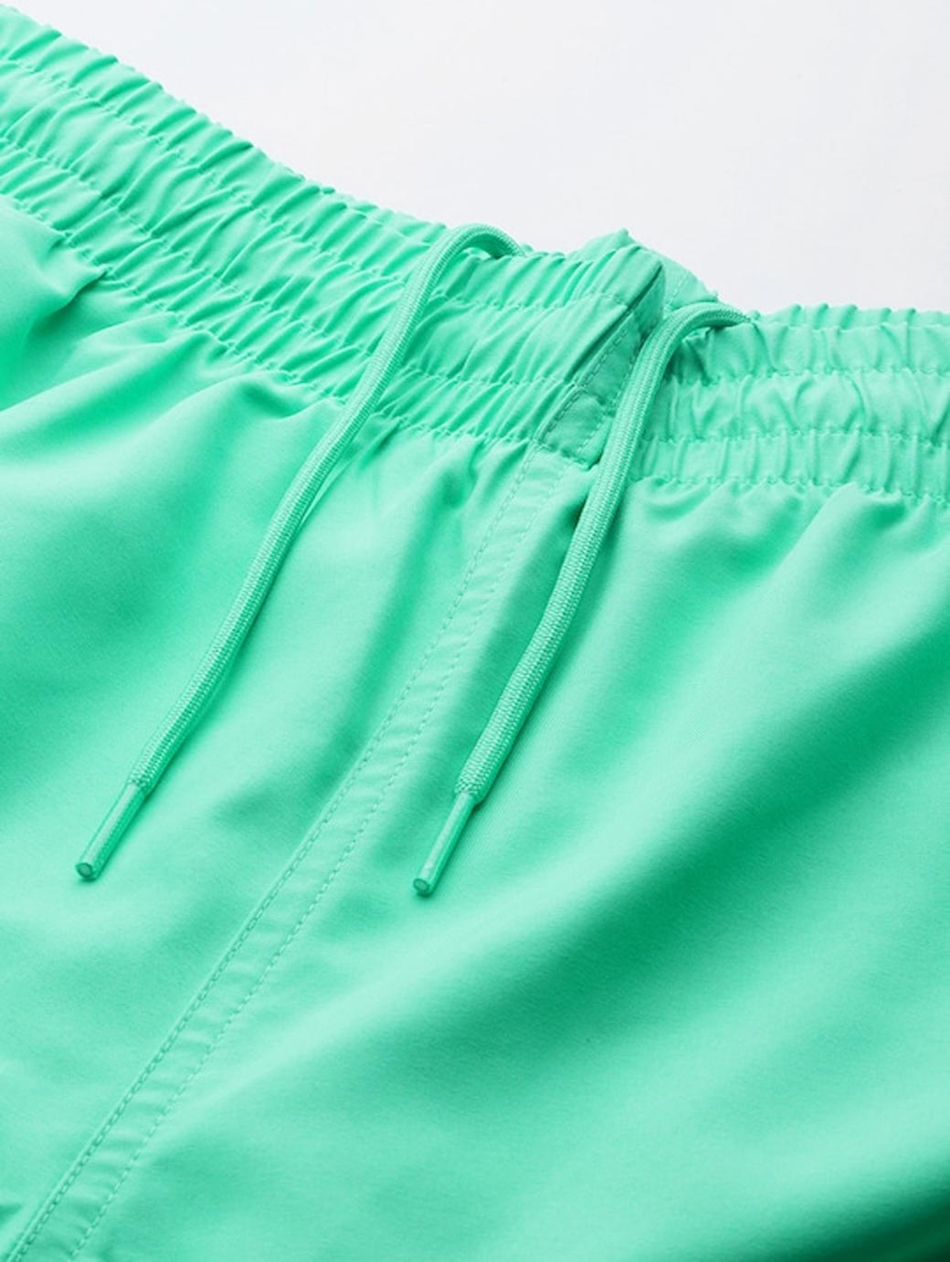 Green solid swim shorts Elastic waist with Drawstring closure.