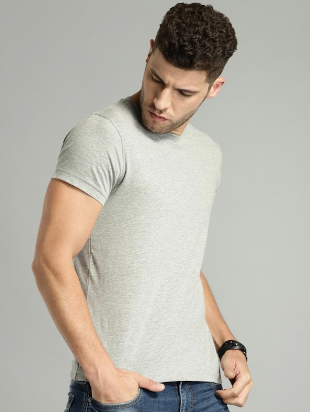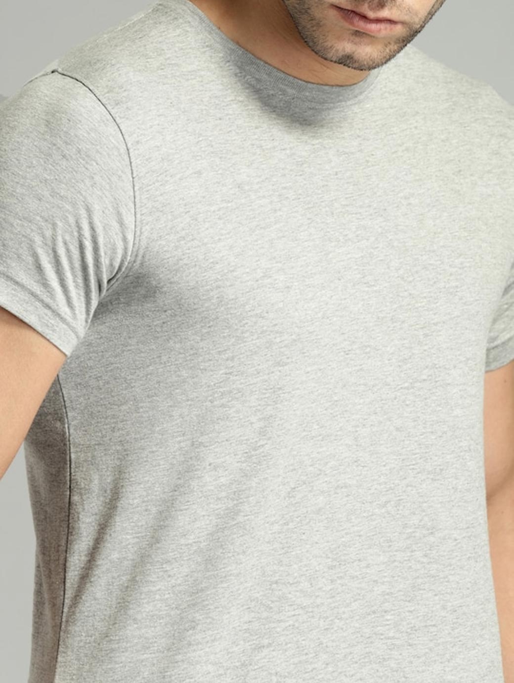 Grey melange solid T-shirt, has a round neck, short sleeves