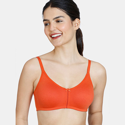 Orange Solid Non-Padded Bra