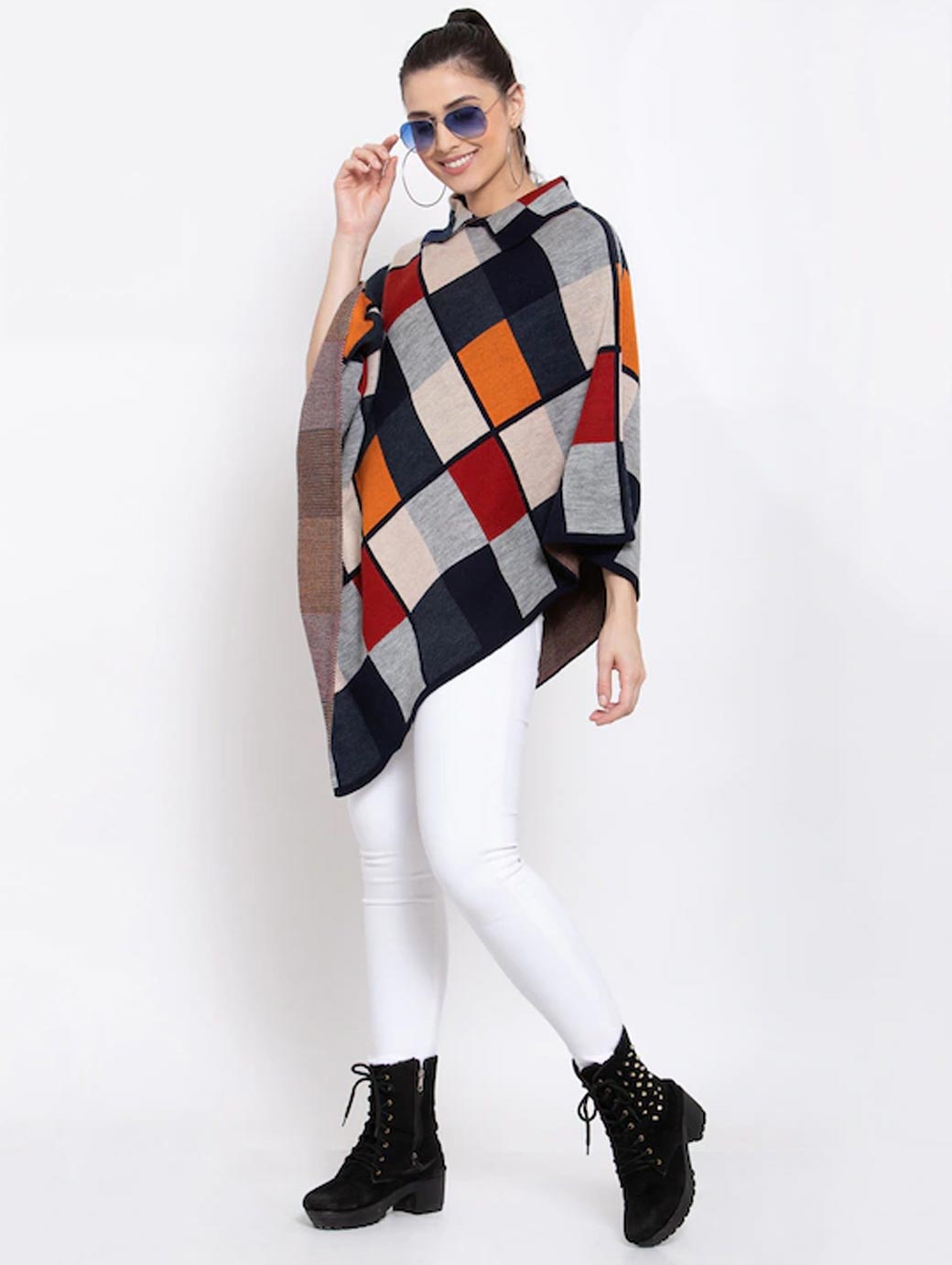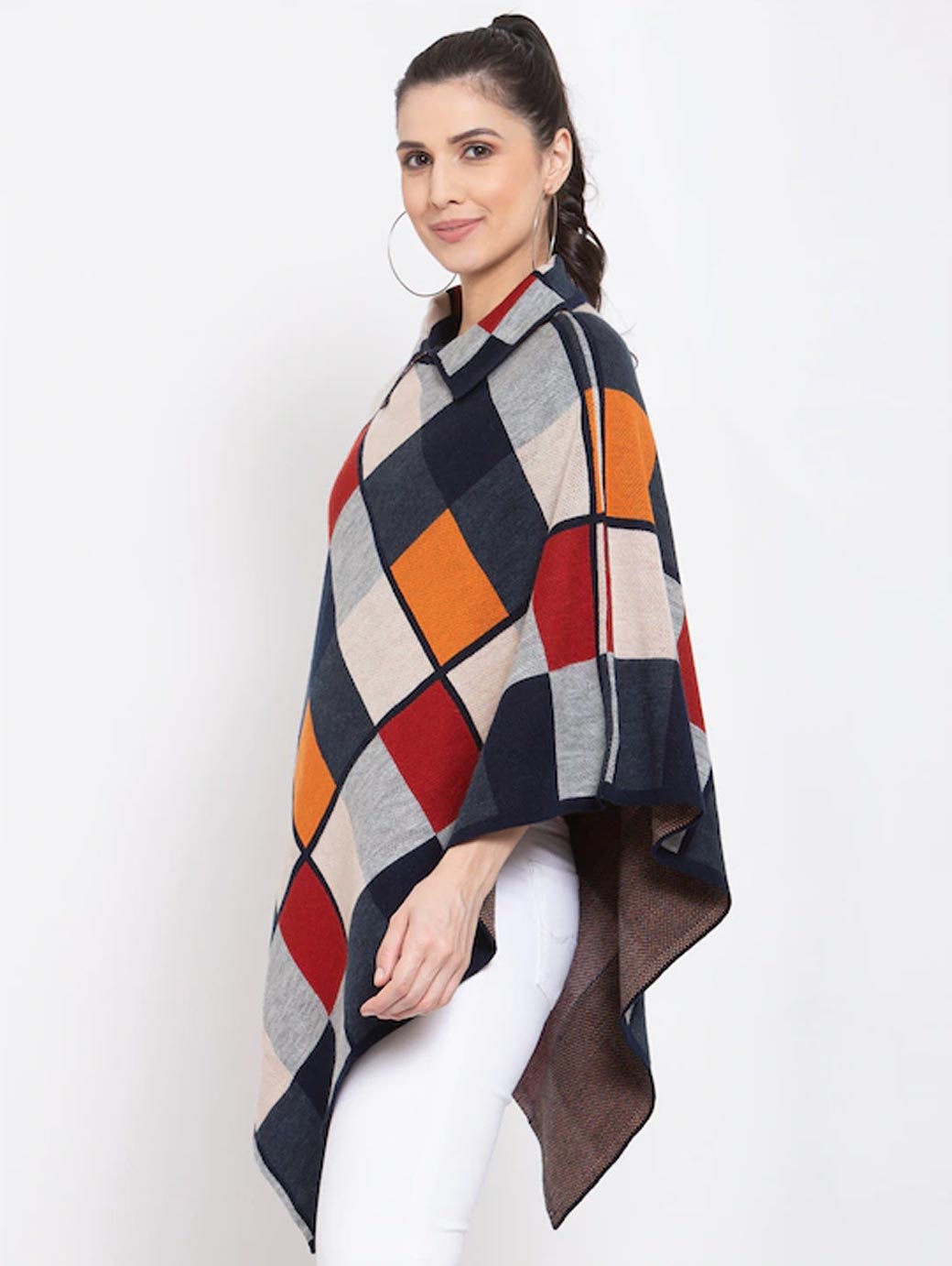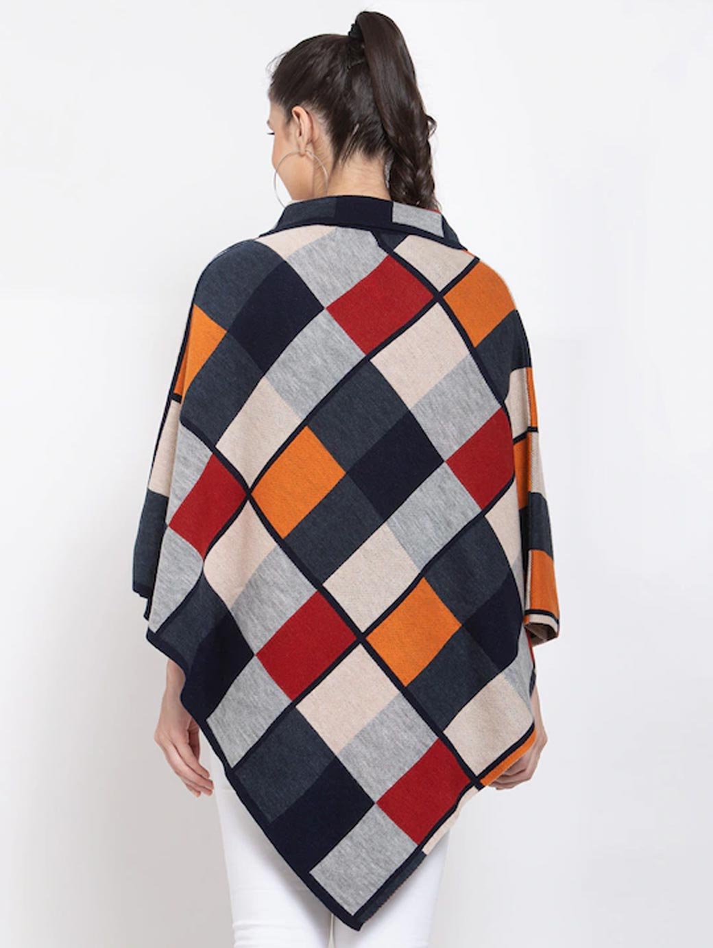 Women Beige & Grey Checked Lapel Shrug