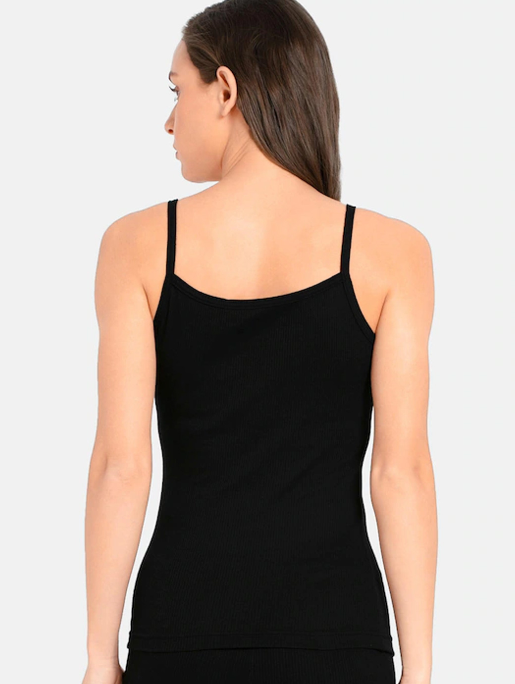 Women Black Solid Thermal Spaghetti Top