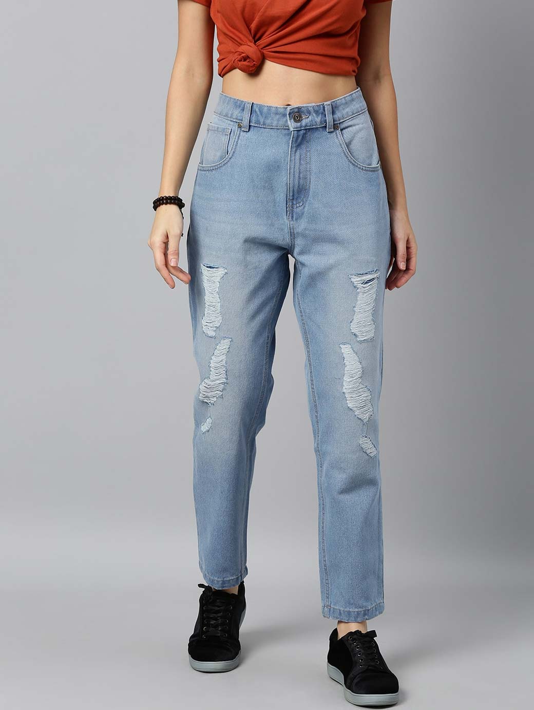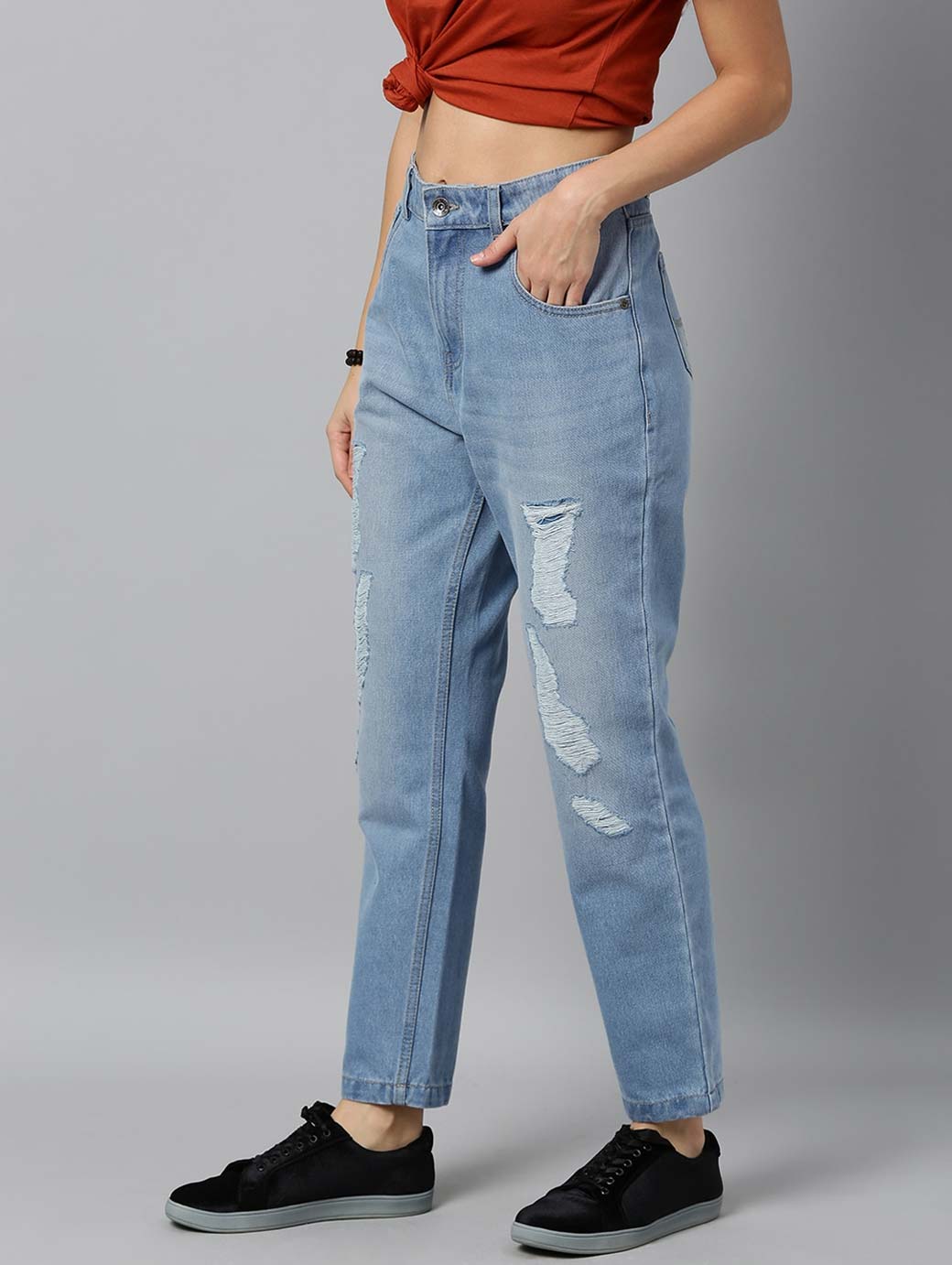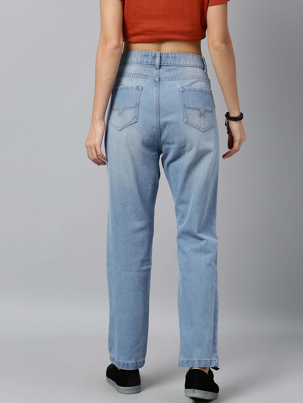 Women Blue Boyfriend Fit Mid-Rise Clean Look Stretchable Jeans
