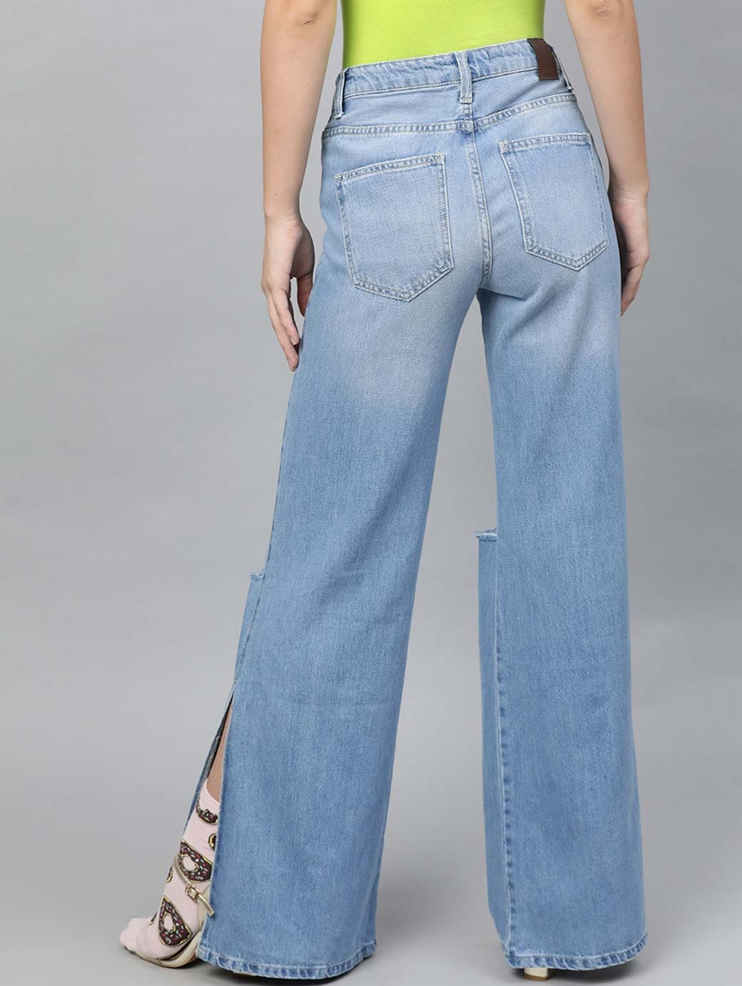 Women Blue Flared Mid-Rise Slash Knee Stretchable Jeans